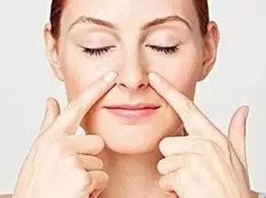 用手指在鼻部两侧自上而下反复揉捏鼻部5分钟,然后轻轻点按迎香(鼻唇沟中,平鼻翼外缘中点处)和上迎香(鼻唇沟上端尽头各)各1分钟。