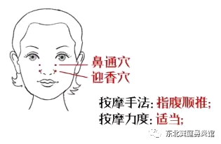 平时也可用一些小的技巧来缓解鼻塞症状,如以拇指和食指,捏住鼻梁两侧,上下稍用力推移,上至内眼角下,下至鼻翼上方,每次10分钟,每日2次。鼻塞加重的时候,可按摩迎香穴和鼻通穴位。但要注意不可强行擤鼻,以免引起鼻腔毛细血管破裂,可按住一侧鼻子擤出鼻涕,或回吸鼻涕从嘴里吐出。