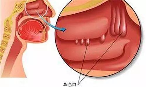 起初感觉鼻内似有擤不出的鼻涕,系鼻腔上半部被息肉堵塞所致。夜晚可出现明显鼻塞而致张口呼吸,久而久之可继发慢性咽炎。
