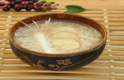 生姜6克,连须葱白6根,糯米60克,米醋10毫升,先将糯米洗后与生姜同煮,粥将熟时放人葱白,最后入米醋,稍煮即可食。