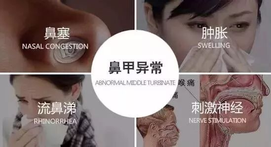 鼻甲肿胀或肥厚时常引起鼻塞,进而影响咽鼓管通气和引流而出现耳鸣和听力减退等耳部症状。鼻甲肿大时会压到鼻中隔,从而会引发三叉神经,筛前神经或其他的炎症疾病,出现不定期发作性额部疼痛。