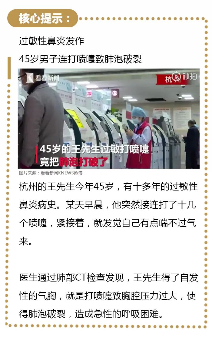 鼻炎打喷嚏是小事?45岁男子连打喷嚏致肺泡破裂
