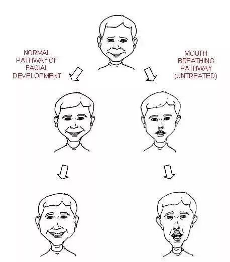 大量的临床调查和研究发现,许多错颌畸形及颜面畸形的患者在其年幼时都患有鼻咽疾病,并长期张口呼吸。