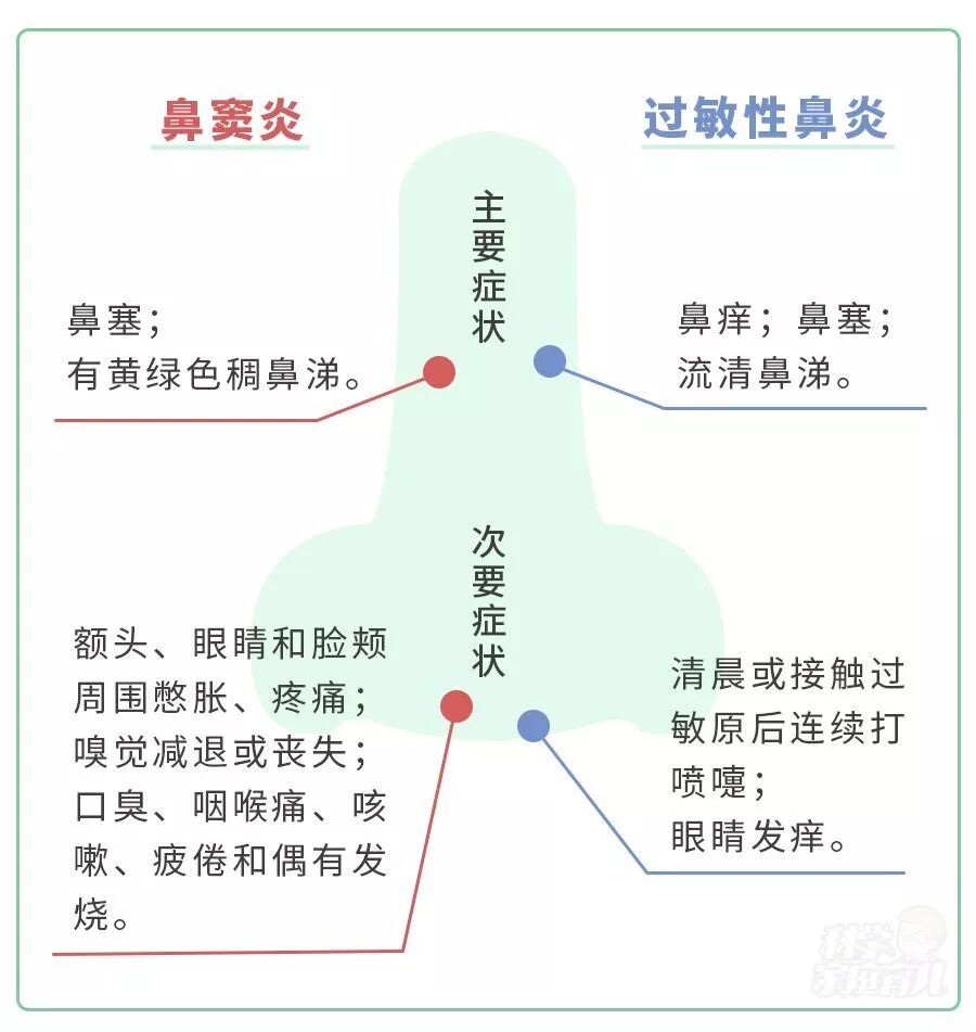 通过上面的对比,大家应该已经看出来鼻窦炎显然是过敏性鼻炎的“升级版”!