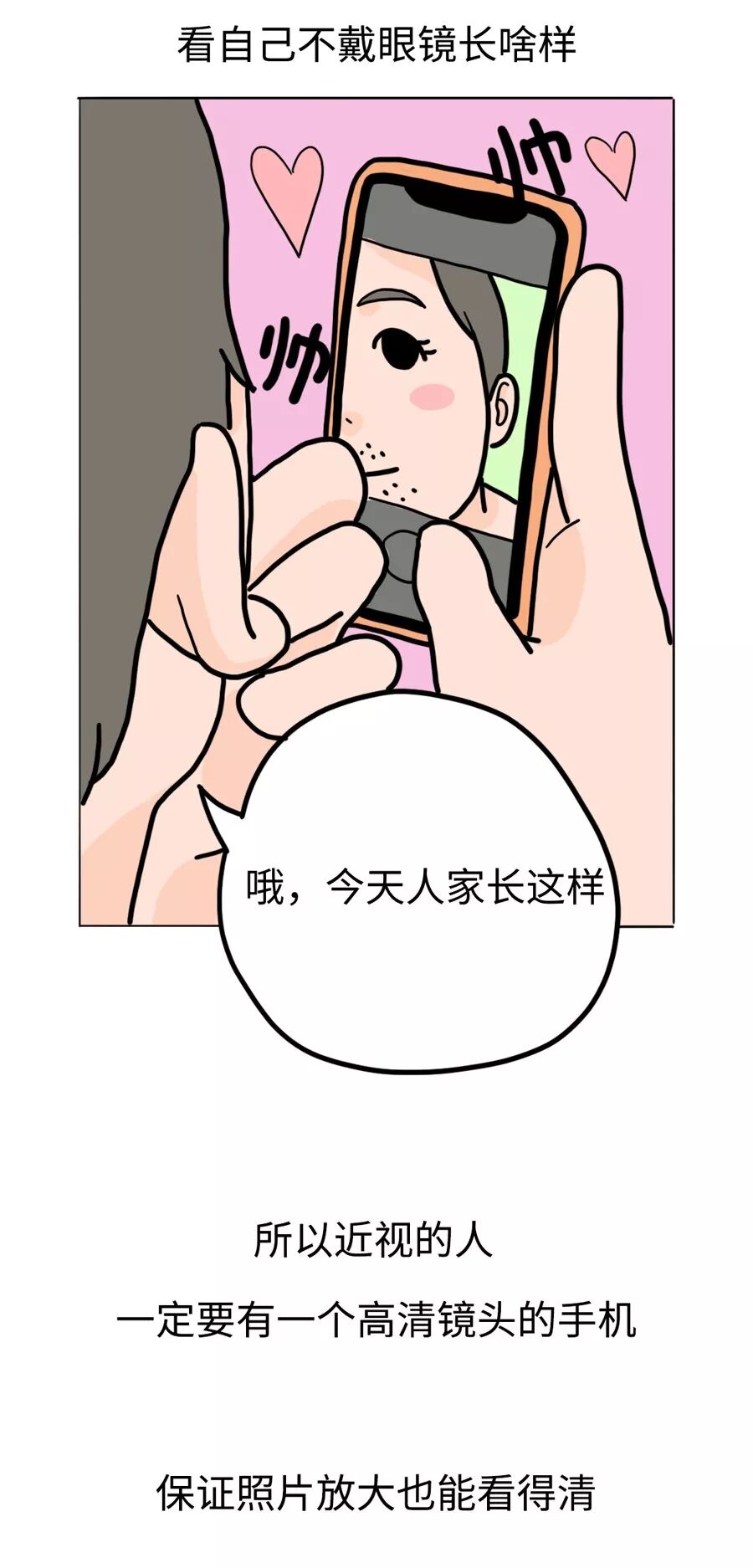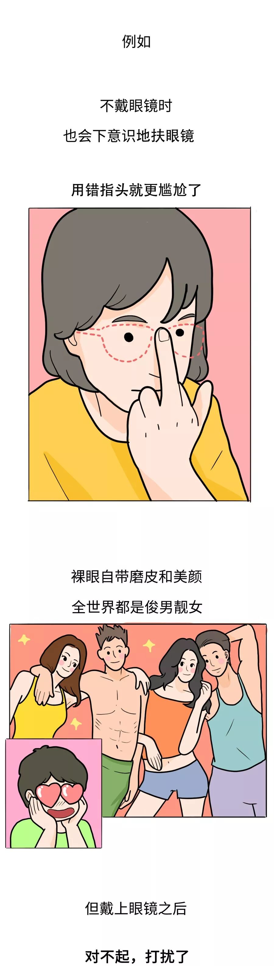 忘戴眼镜的时候就更郁闷了,总被人说「高冷」「不礼貌」,其实根本看不清是谁;每个人看着都像印象派作品一样;吃菜总是吃到葱姜蒜……