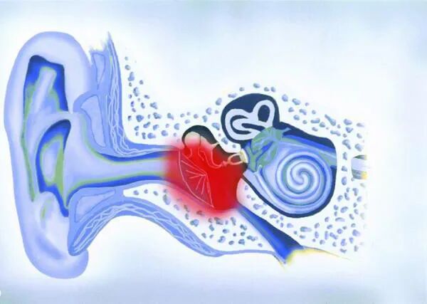 咽喉受累进而发生水肿,使咽口狭窄、阻塞,造成鼓室负压,中耳渗出性液体产生。