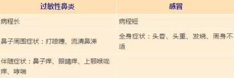 对某种物质过敏所致,临床表现很像“感冒”,但没有先驱症状和全身表现,病程较长。打喷嚏多为4个以上,有的甚至超过10个,流鼻涕多为清水样,不随时间改变,且没有全身低热乏力等表现,常伴有鼻痒、眼睛痒等。
