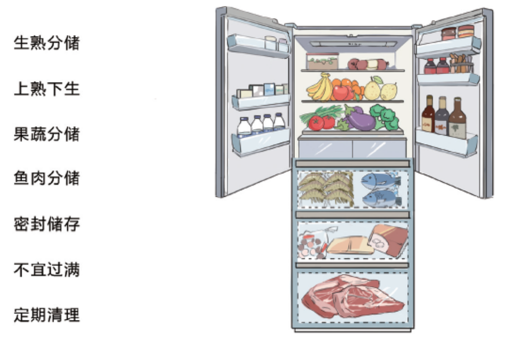 1. 根据 中国营养学会 给出的冰箱存储原则来看: