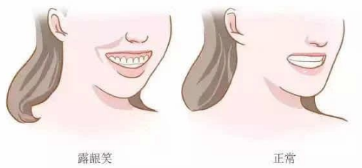 即天生的上颌骨骼发育过长或前突、上唇组织过短或上翻、上唇方肌肌力过强等,导致微笑或大笑时,牙龈暴露量过大。