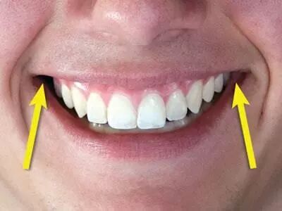 这个黑色区域叫“颊旁间隙”,颊旁间隙过大或过小都会影响美观。