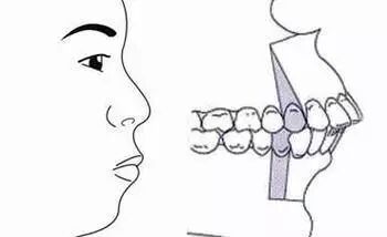 这种深覆合的上前牙是直立的,而下颌(就是下巴)是后缩的。