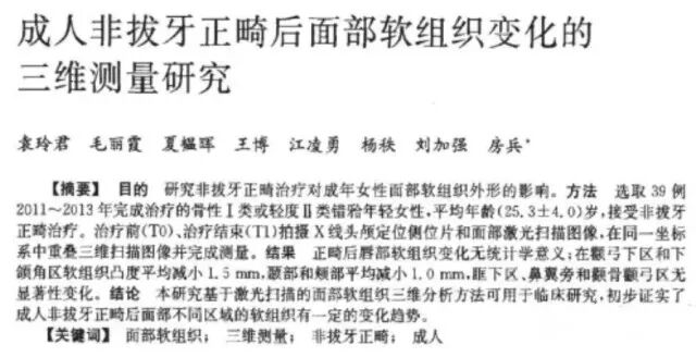 该研究回答了这一问题:正畸治疗后成年女性患者颊部丰满度确有下降,即脸颊部确有变平,这是真实存在的,并非患者臆想。