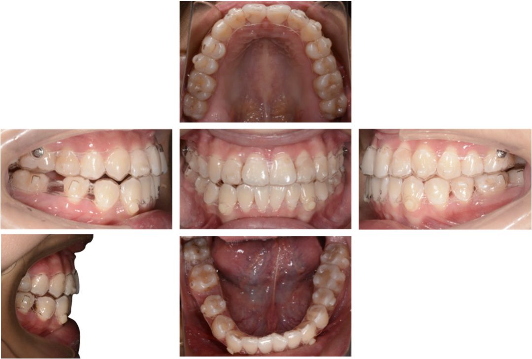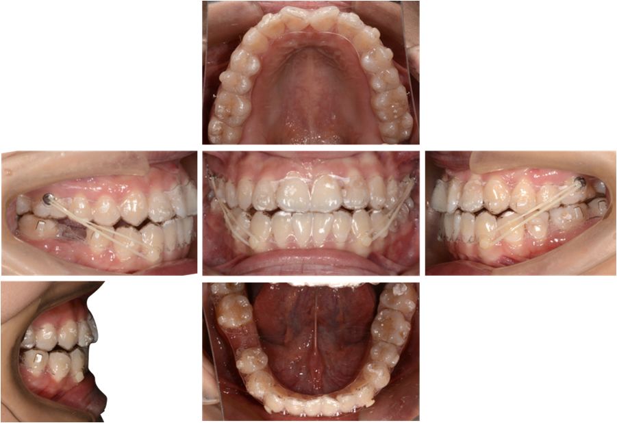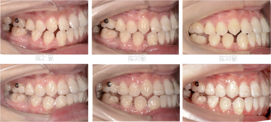 反馈后37副矫治器后,我们完成了矫治,总疗程共30个月。在成功的磨牙长距离前移中,未辅助固定矫治。