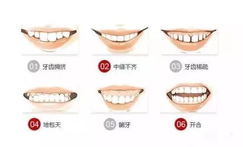 如门牙过度拥挤、牙齿间有缝隙,这种类型的牙齿在开口时显得不美观,前者也会影响牙齿清洁。