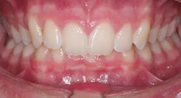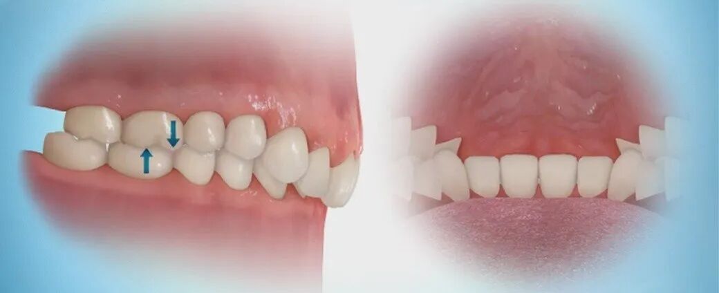 很多时候,深覆合会导致上排和下排前牙拥挤,上排前牙直立而且往内倾斜,进而导致牙齿咬合紊乱。