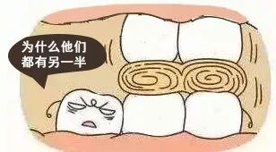 智齿萌发的空间不足,会倒在第二大臼齿上,因而造成第二大臼齿清洁不易,甚至是牙齿部分吸收的现象,造成患者不舒适或牙疼。