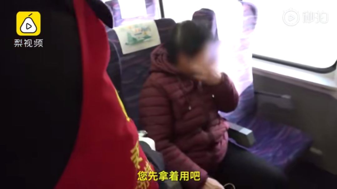 1月30日,山西临汾的D5319次列车上,一位奶奶因为没有口罩,哭了。