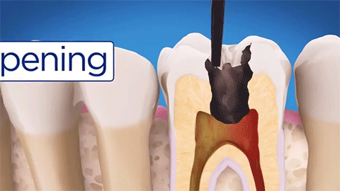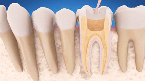 其过程就是先将牙齿内部坏死的牙髓清理干净,再放入永久性消炎杀菌的药物,最后进行冠修复来拯救这颗牙齿。