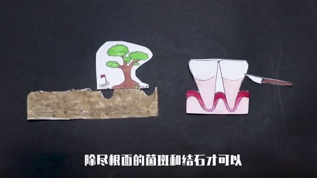 如果任由蚂蚁成员壮大,土壤就不再紧紧的包围树根,这就到了牙周炎。牙龈化脓、肿包,牙周膜也遭到破坏,牙槽骨逐渐吸收,牙龈与牙根开始分离。此时需要切开脓肿,除净根面的菌斑和结石才可以。