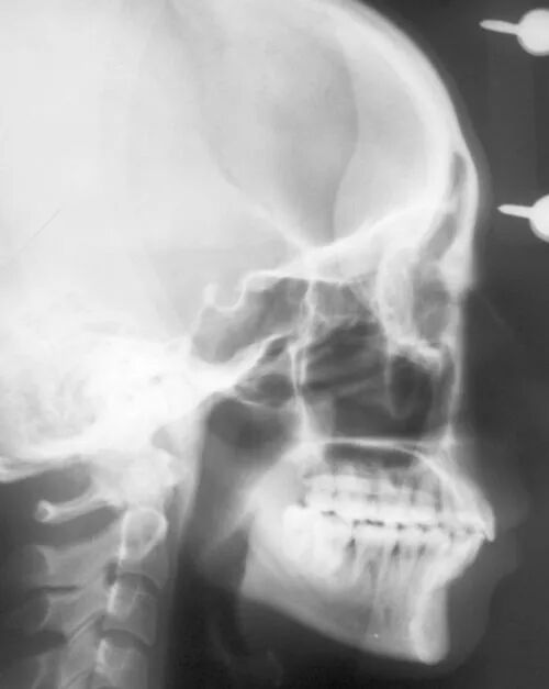 这种牙片在正畸邻域应用最为广泛,诸如正畸(牙齿矫正)前的数据分析,制定矫正计划等,头颅侧位片则是重要参考依据。
