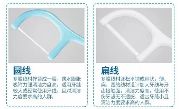 ① 多用尼龙线、丝线、涤纶线或上蜡的棉线制成,容易通过牙间隙接触紧密的区域。