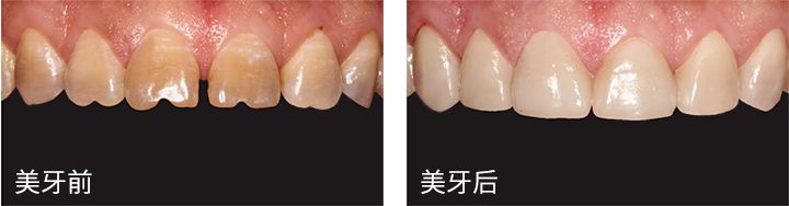 其实就是给牙齿穿了一层外衣,既能遮盖牙齿上的小缺陷、缺损,又能使牙齿颜色由黄变白。