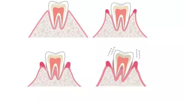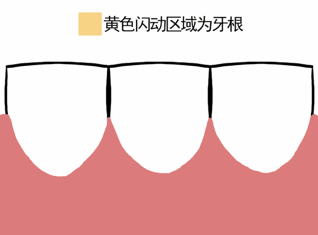 然后,牙缝因为没有牙龈覆盖而暴露,变大,会让食物嵌塞其中,造成牙龈流血,炎症加重,牙齿根面形成龋坏!