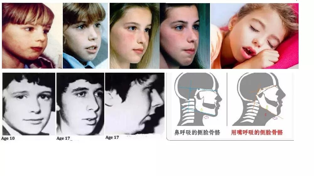 2、牙源性口呼吸主要由于上颌前牙前突造成嘴唇关闭困难而引起的口呼吸;