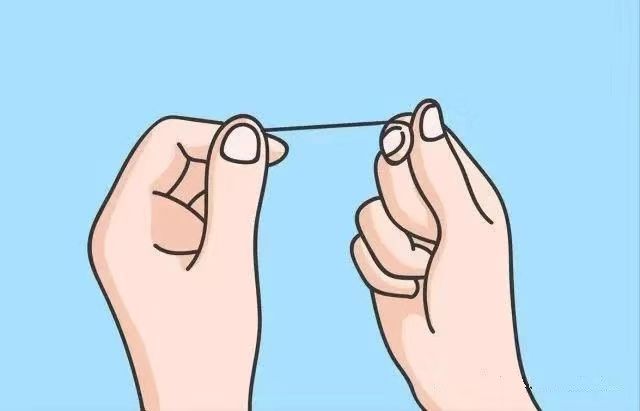 第1步 :取出一节长约30-40cm左右的牙线,两端分别缠绕在左右手的中指上固定,将中指卷曲起来;