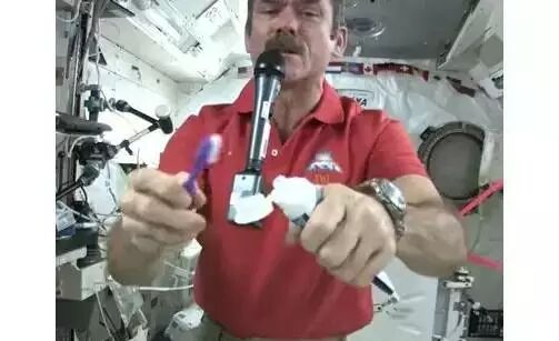 2007年,宇航员曾在“国际空间站”对地面青少年进行过一次授课,演示了在太空如何刷牙:漱口水需要吐到专用毛巾上,因为太空微重力环境下,水不会往低处流。