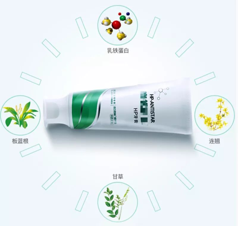 我们在电商网站上发现,几乎所有“抗幽门螺杆菌牙膏”都添加了乳铁蛋白(LF)。这是一种具有多种生物学功能的蛋白质, 不仅参与铁的转运, 而且还具有抗微生物、抗氧化、抗癌、免疫调节等功能。一些实验表明,乳铁蛋白可以通过结合铁离子, 夺取HP生长所需的铁,阻止HP在胃内定植,还能减少细菌量,有一定的抗HP的作用。