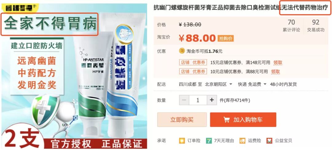 一边宣称“全家远离胃病”,一边说“无法代替药物”,正的反的都被你说了啊丨电商网站截图