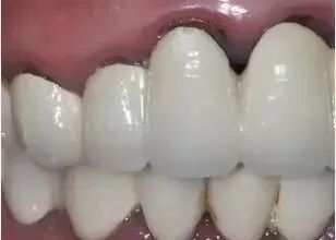部分患者配戴一段时间后,颈缘处的牙龈组织会出现“黑线”,甚至还有此类烤瓷牙引发过敏反应的病历报道,临床上较容易出现崩瓷现象。