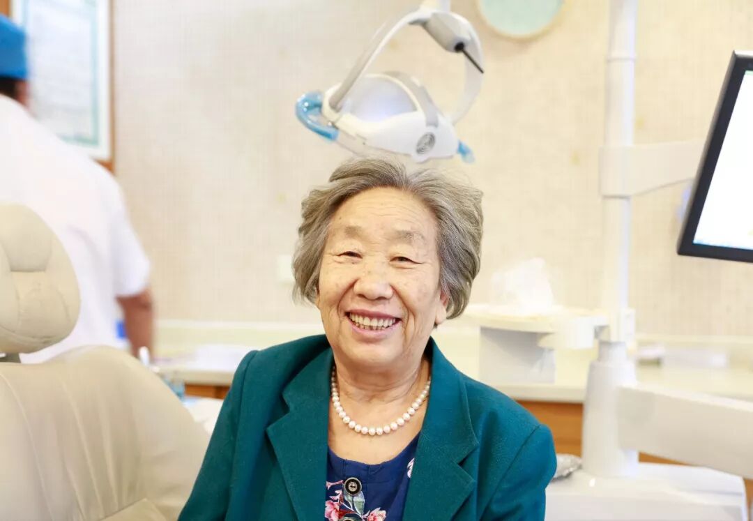 完成种牙修复后的李阿姨笑容满面,她表示,手术不痛比较轻松,要好好保重身体活到一百岁。