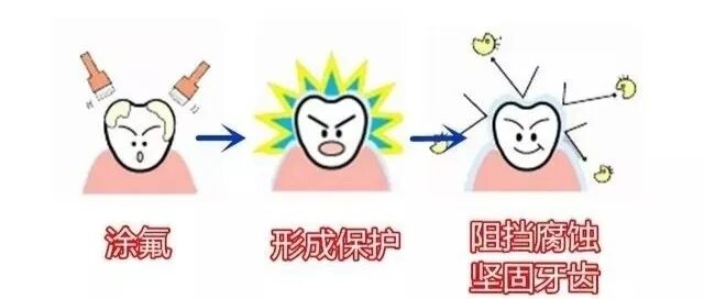 涂氟治疗,是将含氟的物质对牙齿表面进行处理,使氟化物停留牙面上,像是给牙齿穿上一层薄薄的保护衣,促进牙齿再矿化,持续释放氟离子,达到预防龋齿的目的。