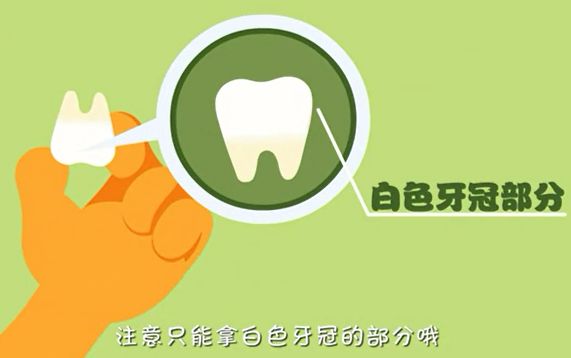 注意拾起牙齿时要捏住牙冠部分,不可以揉捏牙根部分,以免损伤牙根。
