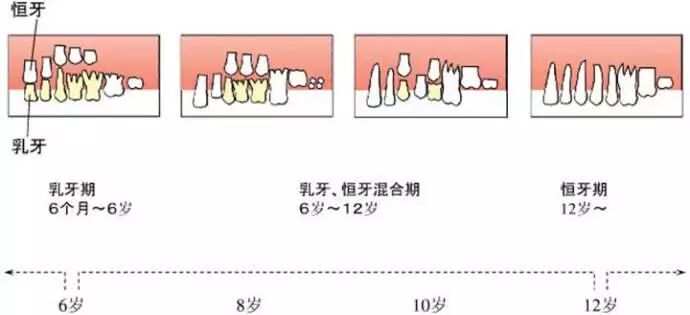 其实仔细算来,孩子6个月前后开始长牙,6岁进入换牙期,12岁左右才会换完所有的牙齿。这意味着,宝宝6个月大时长的牙,要到6岁左右才开始换;宝宝2岁时长的牙,要用到12岁左右才换!乳牙在孩子口腔中最长的服务时间长达10年之久,所以我们不能忽视了乳牙存在的意义。