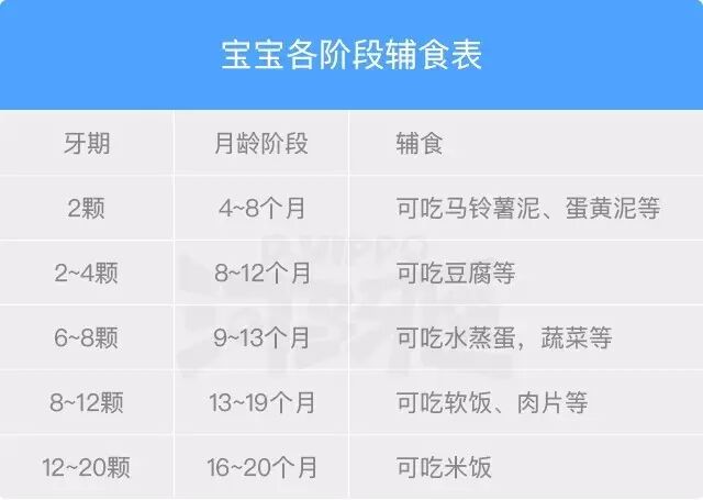当宝宝第一对乳牙萌出,从此脱离没有牙齿的行列时。这个时期的宝宝很喜欢将任何他拿得到的物品放到口中咀嚼,妈妈们就可以在这个时期试着给予宝宝一些半固态的食物,比如马铃薯泥、蛋黄泥、麦片粥等等,让宝宝体验由水状饮食到糊状饮食的过度。