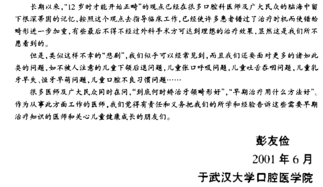 ▲彭友俭主编的早期矫治书籍《口腔正畸早期治疗学》