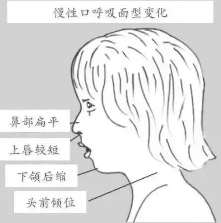 长期习惯性口呼吸的孩子,除了嘴巴经常微张,相貌上还有共同的特点: