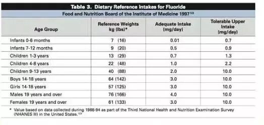 推荐幼儿每日摄入氟的含量表