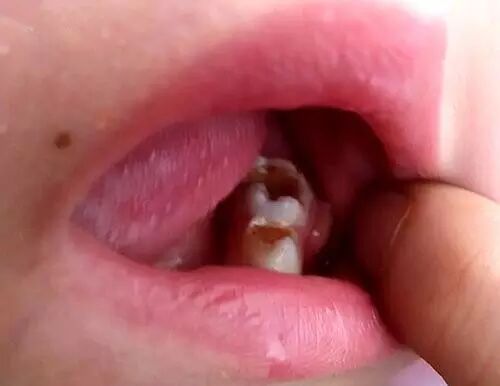 不要以为蛀牙就是长几个黑洞洞,家长如果不重视,乳牙龋病恶化的速度将快得超乎你的想象,置之不理的话很有可能就是下面这种情况了。
