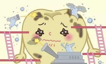 龋齿发生和发展过程中,细菌在龋病发病中起着主导作用,最主要的是某些变形链球菌和乳酸杆菌。这些细菌与唾液中的粘蛋白和食物残屑混合在一起,牢固地粘附在牙齿表面和窝沟中。这种粘合物就是牙菌斑或菌斑。菌斑中的细菌产酸,造成菌斑下面的釉质表面脱钙、溶解。临床调查证明口腔中菌斑多的儿童龋齿也多。