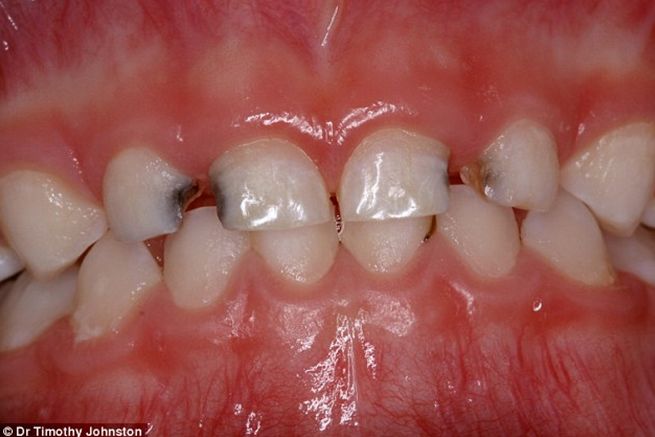 一般在牙齿和牙床交界处及两颗牙齿之间的区域,特别容易积存黄色乳酪状粘性物,它是由食物残屑和细菌堆积而成,一般称它为牙垢。它很柔软,只要稍微擦拭就可以清除掉。要仔细地除去它,要不然很容易从那儿开始蛀牙。