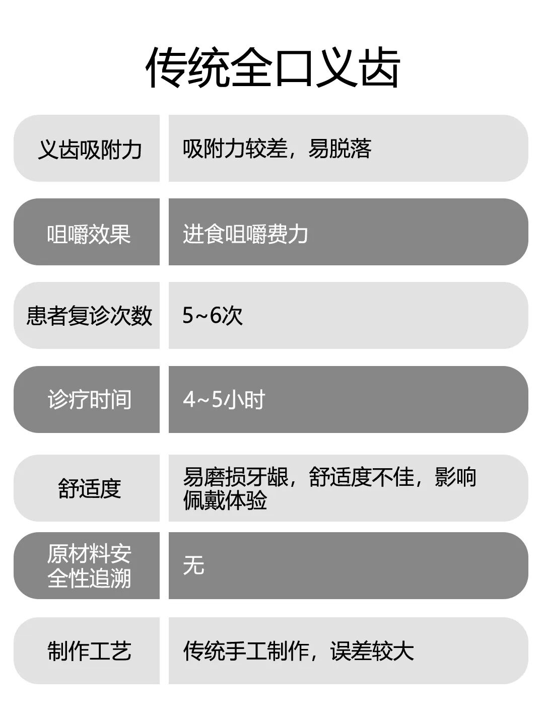 传统义齿易脱落、易松动、咀嚼能力差等问题