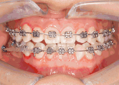 最普通最常见的金属牙套,托槽需要粘在牙齿表面,在矫正过程中是不能随意拆卸的。