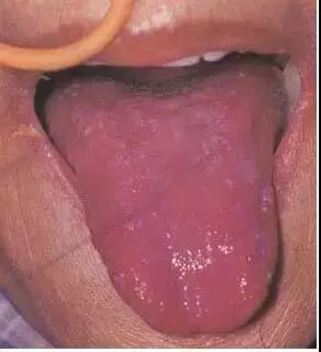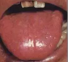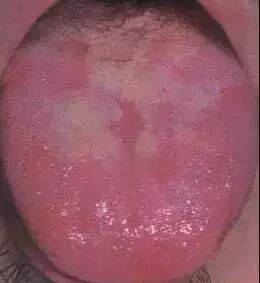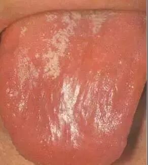 舌粘腻乳头萎缩,舌苔全部退去,舌面光滑如镜,称为“镜面舌”提示胃气、胃阴枯涸。多见于热病伤阴后期,内伤阴虚、气血两虚等证。本为红绛镜面舌,由热盛阴液枯涸所致。