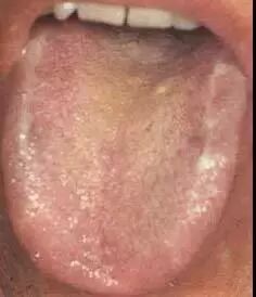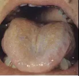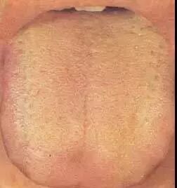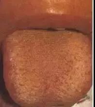 黄腻苔多见于湿热、痰热、食滞化热、暑温、湿温、腑气不利等。本图患者为流行性感冒后,舌苔淡黄厚腻,胸闷纳呆,提示湿热中阻,脾失健运。