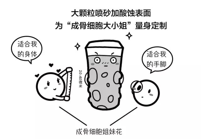 想要获得成骨细胞热情拥护,就需要种植体的表面符合成骨细胞的形态和大小,这样成骨细胞才会心甘情愿的在种植体表面安家。