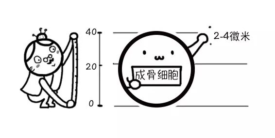 成骨细胞是直径为20-40微米的椭圆形或立方体形细胞,当他附着在种植体表面进行下一步分化时就会形成2-4微米的小手和小脚(基质突起),最终形成新的骨细胞,也就是我们常说的长出了新的骨。